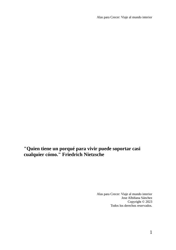 «Alas para Crecer: Viaje al mundo interior» – Una guía esencial para la transformación personal. Descubre tu camino hacia el crecimiento personal con «Alas para Crecer: Viaje al mundo interior». En esta continuación del libro de introducción al crecimiento personal, Alas para crecer: Inicio del viaje, el autor te invita a profundizar en tu viaje de auto-descubrimiento. Explora módulos detallados sobre autoconocimiento, inteligencia emocional, y habilidades sociales, enriquecidos con ejercicios prácticos, reflexiones personales, y tests diseñados para impulsar tu desarrollo. Este libro no es solo una lectura, sino un compañero en tu camino hacia una vida más plena y consciente. Únete al autor en este viaje transformador y despliega las alas que te llevarán a tu verdadero potencial.
