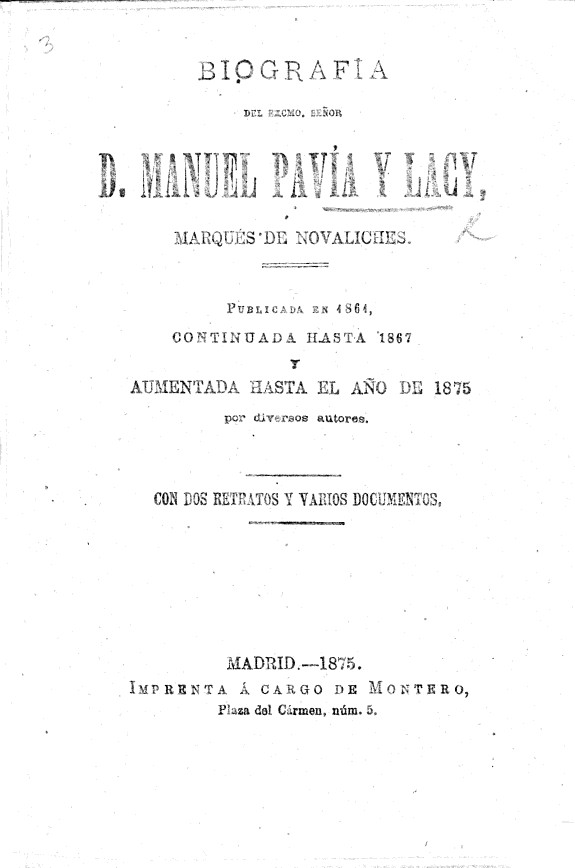 Autor: Manuel PAVIA Y. LACY (Marquis de Novaliches.)