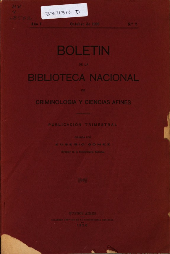 Autor: Biblioteca nacional de criminologia y ciencias afines. Buenos Aires