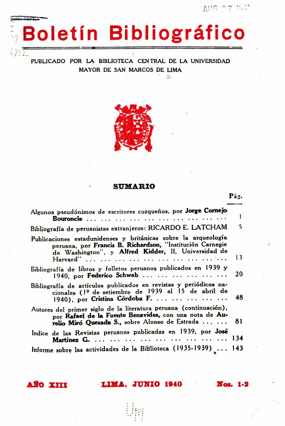 Autor: Universidad Nacional Mayor de San Marcos. Biblioteca