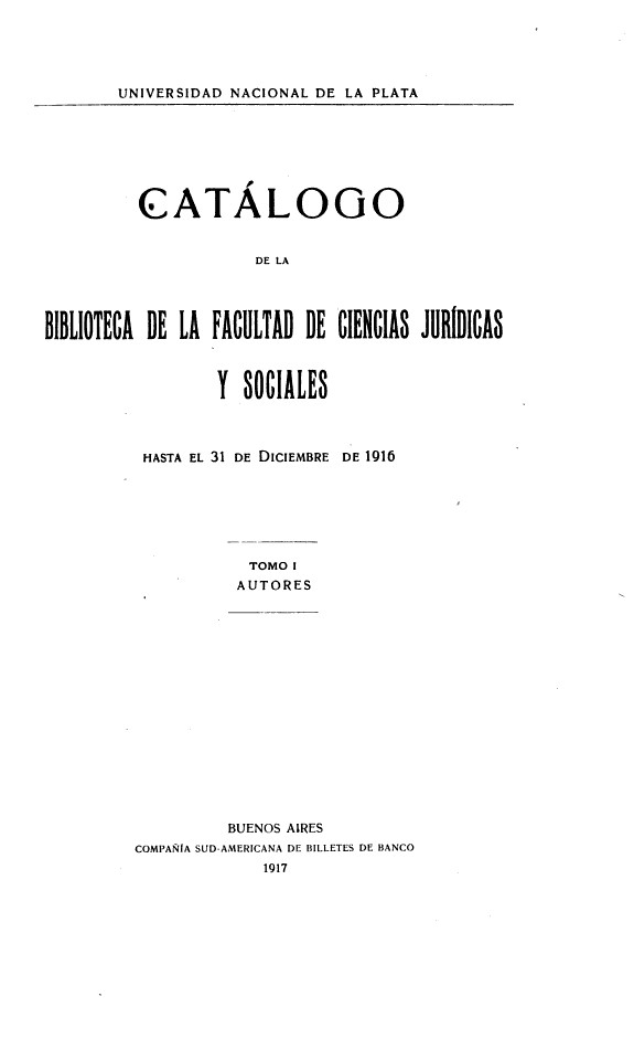 Autor: Universidad Nacional de La Plata. Ciencias jurídicas y sociales, Facultad de. Biblioteca