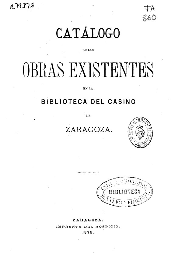 Autor: Casino de Zaragoza. Biblioteca