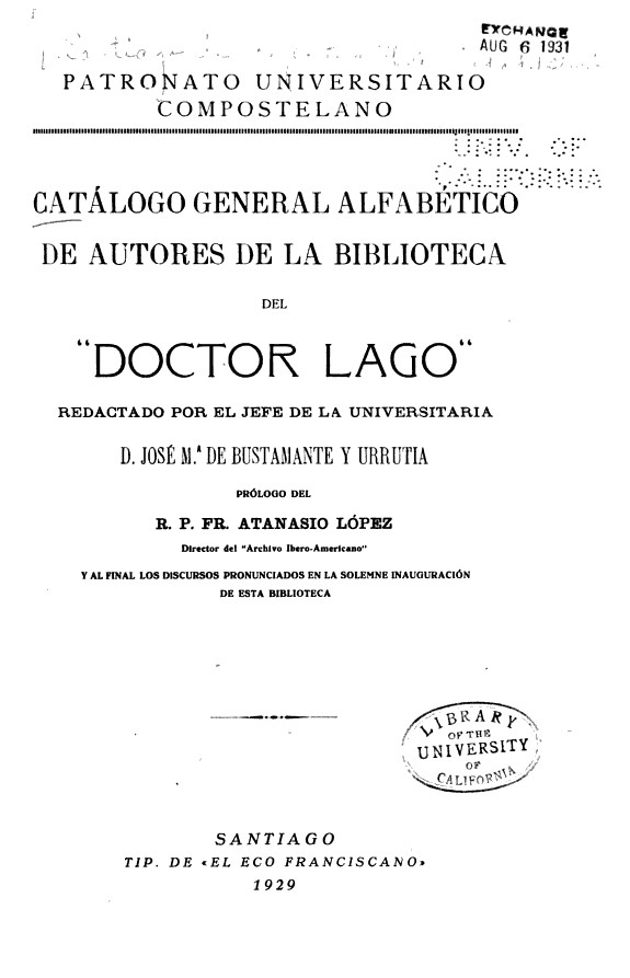 Autor: Universidad de Santiago de Compostela. Biblioteca del «Doctor Lago».