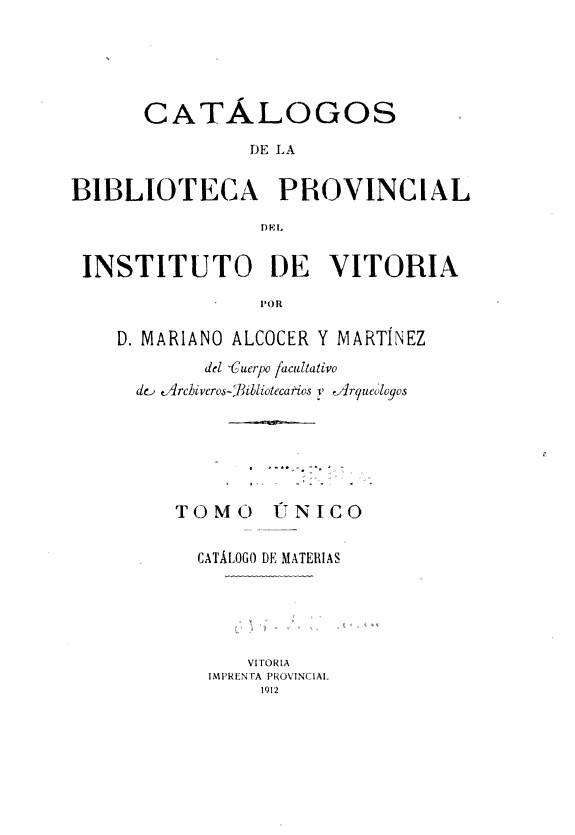 Home / Ciencia / Catálogos de la Biblioteca provincial del Instituto de Vitoria: Materias. 1912