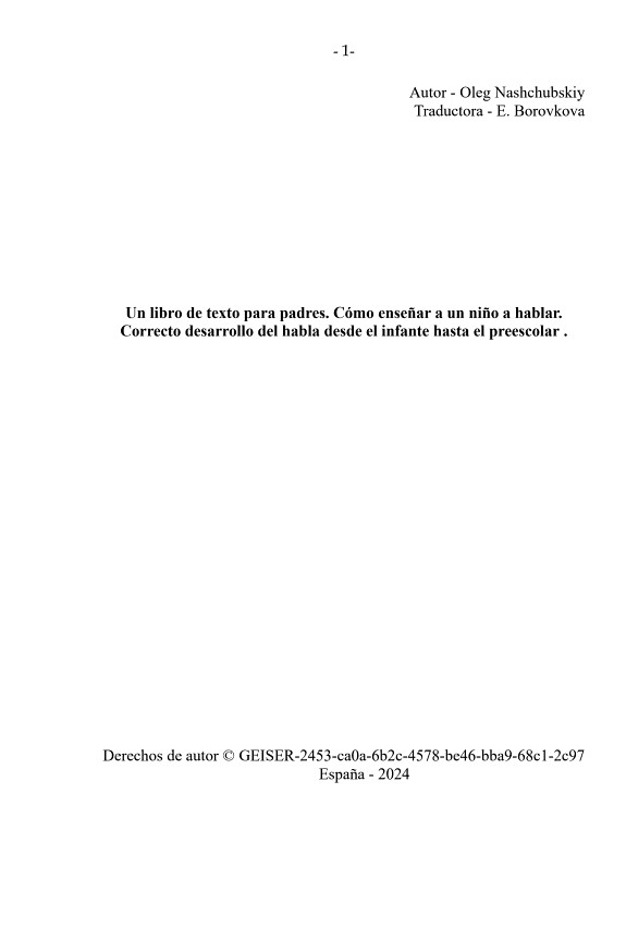 Autor: Oleg Nashchubskiy Editorial: Oleg Nashchubskiy Año: — Resumen En el libro consideraremos en detalle muchos temas relacionados con el desarrollo del habla en los niños. Enumeramos solo algunos d...