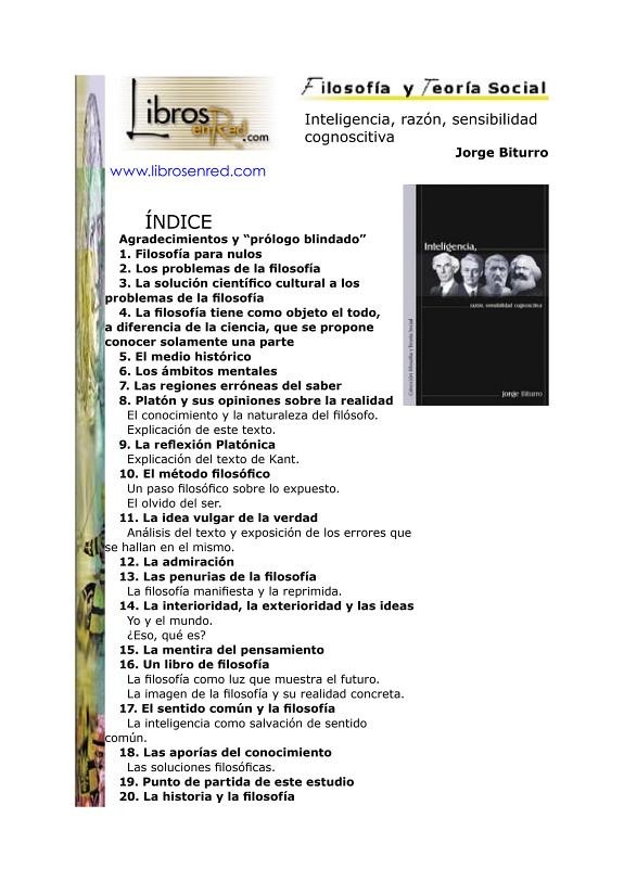 Autor: Jorge Biturro Editorial: LibrosEnRed Año: 2002-11 Resumen Está dirigido especialmente a aquellos que deseen cultivar su capacidad de pensamiento y que busquen profundizar sus reflexiones acerca...