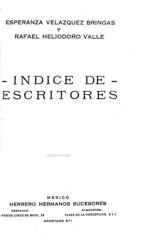 Autor: Esperanza Velázquez Bringas, Rafael Heliodoro Valle Editorial: — Año: 1928 Resumen Sin descripción disponible. ¿Te gusta la literatura contemporánea? Descubre más títulos en Publibros – L...