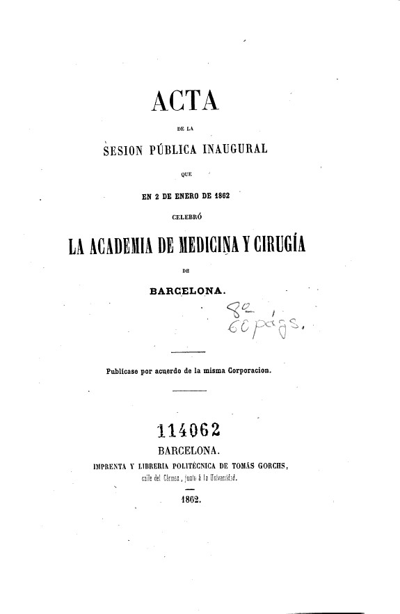 Autor: Academia de Medicina y Cirugía de Barcelona Editorial: — Año: 1862 Resumen Sin descripción disponible. ¿Te gusta la medicina? Descubre más títulos en Publibros – Medicina....