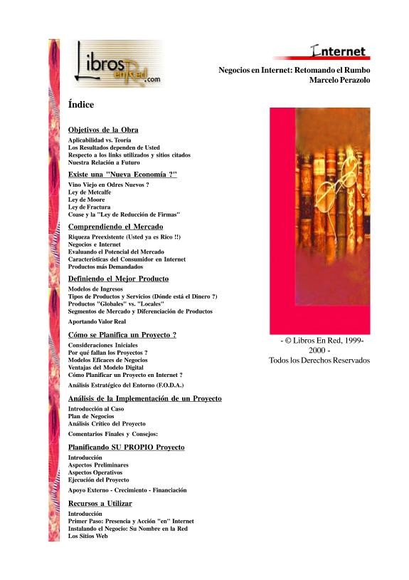 Autor: Marcelo Perazolo Editorial: LibrosEnRed Año: 2001-10 Resumen El profundo cambio en la situación general de los Proyectos de Internet obliga a retomar el rumbo. Pero no cualquier rumbo, sino el ...