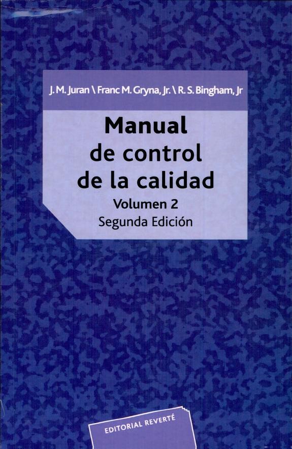 Autor: Joseph M. Juran, Frank M. Gryna, R. S. Bingham Editorial: Reverte Año: 1983 Resumen Esta segunda edición del Manual de control de la calidad correspondiente a la tercera edición original se ha ...