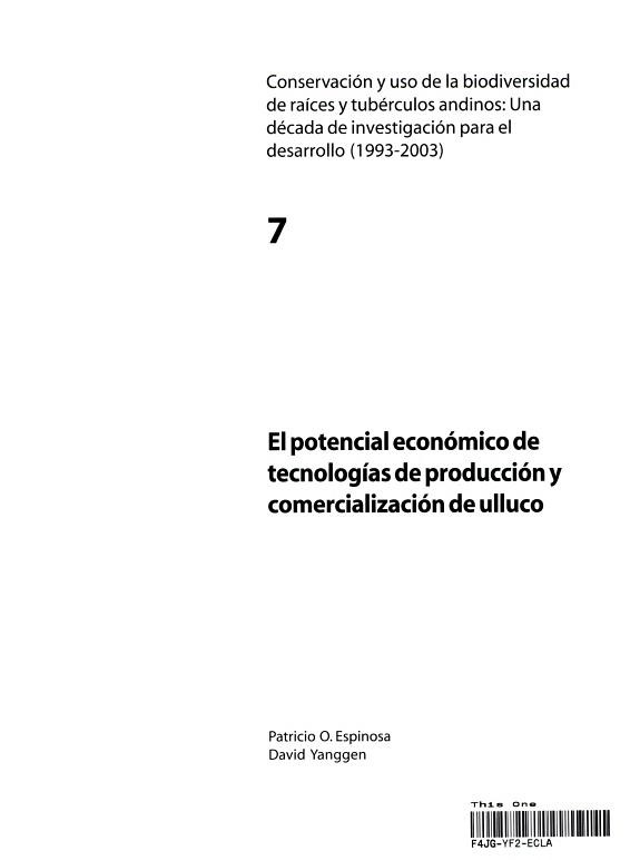 Autor: Patricio O. Espinosa Editorial: International Potato Center Año: 2004 Resumen Sin descripción disponible. ¿Te gusta la ventas? Descubre más títulos en Publibros – Ventas....