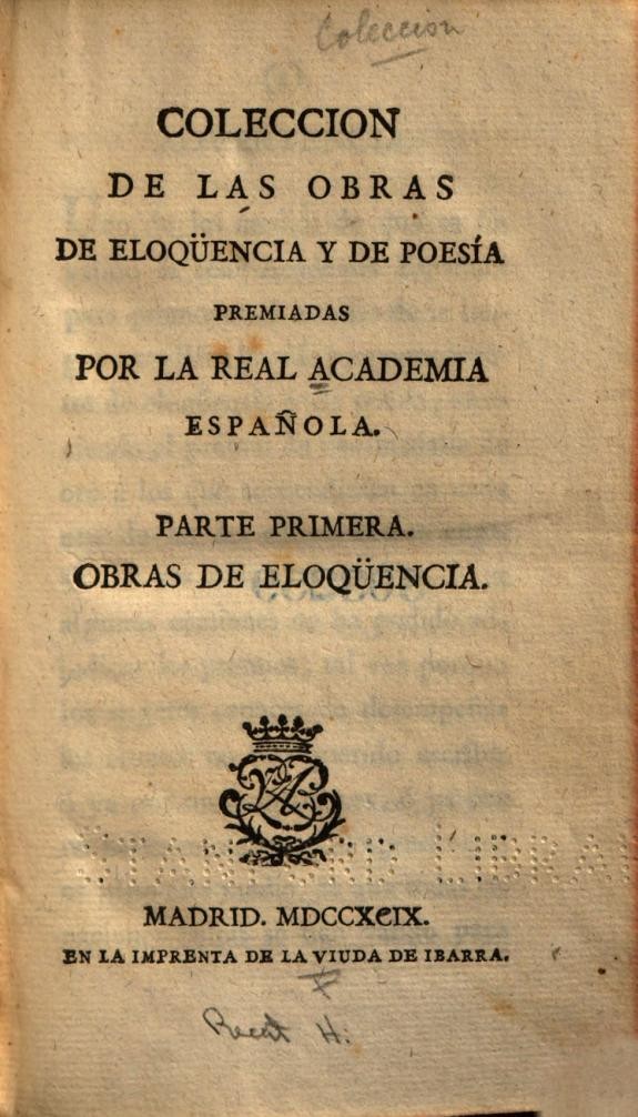 Coleccion de las Obras de Eloquencia y de Poesia premiadas por la Real Academia Espanola
