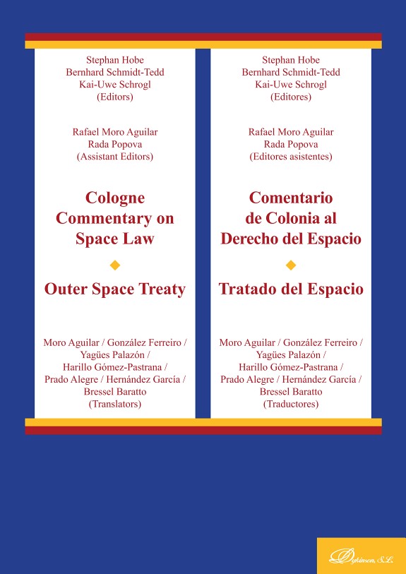 El Comentario de Colonia al Derecho del Espacio es un análisis en tres volúmenes de las normas escritas del Derecho del Espacio, según aparecen enunciadas en los Tratados y en las Resoluciones de la Asamblea General de Naciones Unidas.El Volumen I se ocupa del Tratado sobre los Principios que Deben Regir las Actividades de los Estados en la Exploración y Utilización del Espacio Ultraterrestre, incluso la Luna y otros cuerpos celestes, también conocido comúnmente como el ‘Tratado del Espacio’. En este Volumen, un grupo de veinte expertos, autoridades internacionales en la materia, aborda el contexto histórico y proporciona una interpretación, artículo por artículo, del Tratado del Espacio. La obra incluye así mismo información acerca de la práctica posterior de los Estados, la aplicabilidad en el momento presente, y las perspectivas futuras de este Tratado.Los otros cuatro Tratados de la ONU en materia espacial: el Acuerdo de Salvamento de 1968, el Convenio sobre Responsabilidad de 1972, el Convenio sobre Registro de 1975, y el Acuerdo sobre la Luna de 1979, se abordan en el Volumen II del Comentario, publicado en 2013. El Volumen III (publicado en 2015) se centra en analizar las ocho Resoluciones y Declaraciones de Principios adoptadas por la Asamblea General de Naciones Unidas relativas a las actividades espaciales.Con ocasión del 55º aniversario de la elaboración del Tratado del Espacio, se ha traducido al español el presente Volumen I del Comentario de Colonia al Derecho del Espacio. The Cologne Commentary on Space Law is a three-volume annotation on the written norms of space law as enunciated through the Treaties of the United Nations and its General Assembly Resolutions.Volume I focuses on the 1967 Treaty on Principles Governing the Activities of States in the Exploration and Use of Outer Space, including the Moon and Other Celestial Bodies, popularly known as the ‘Outer Space Treaty’. A broad international authorship of twenty experts addresses the historical overview and provides a provision-by-provision interpretation of the Outer Space Treaty. This Volume also includes insights into the subsequent State practice, present-day applicability and future perspectives of the Treaty.The other four UN Treaties, the 1968 Rescue Agreement, the 1972 Liability Convention, the 1975 Registration Convention and the 1979 Moon Agreement, are addressed in Volume II, which was published in 2013. Volume III (published in 2015) delves into the eight most relevant United Nations General Assembly Resolutions/Principles on space activities.On the occasion of the 55th anniversary of the Outer Space Treaty, Volume I of the Cologne Commentary on Space Law has been translated into Spanish.