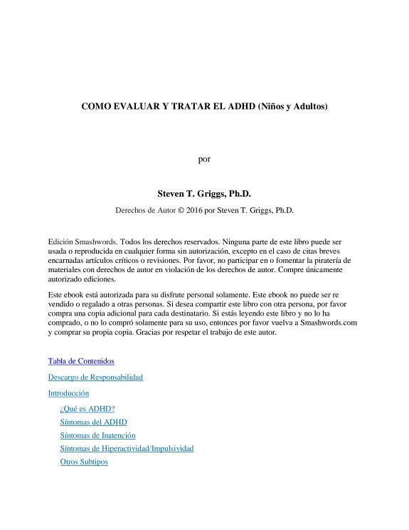 Soy un psicólogo clínico. Escribo nada de grasa, cómo-a los libros electrónicos sobre temas y condiciones que puede resolver todos los días en la oficina. Escribo sobre temas como las relaciones, los niños y el divorcio, el perdón, la culpa, la dilación, la ansiedad, la asertividad, el cambio de comportamiento de los niños, la autoestima, visitas a los niños, el cambio de comportamiento y control de peso del adolescente. Este último e-libro es mi intento de destilar 32 años de trabajo con niños y adultos que tienen ADHD. Este ebook te dice exactamente lo que hago en la oficina para diagnosticar y tratar el ADHD..He aquí un resumen rápido de su contenido. -Intro Y ADHD prueba. -Definiciones Y síntomas–«Classic» ADHD: La falta de atención / hiperactivo-impulsivo. subtipo hyperfocused, subtipo sensibilización central, temporal, límbico y el anillo subtipos / fenómenos. Otros síndromes cognitivos. -ADHD Reconocido por cuatro organismos oficiales del gobierno. Demografía: cinco por ciento de la población. Frecuencia de los niños frente a las niñas, los niños frente a los adultos. preponderancia genética y propensiones geográficas. ADHD y el rendimiento gradeschool; tasas de retención. -ADHD Y la composición familiar. ADHD y la actuación, el consumo de sustancias, las facturas médicas, problemas de conducta. Niños frente a las niñas – diferentes comportamientos? diagnósticos diferenciales y -ADHD (ODD, OCD, estados de ánimo y, específicamente, el trastorno bipolar). -ADHD–Primera aparición, el cual los síntomas. ADHD y los críticos primeros tres años de la escuela (KG, primero y segundo grado). -Causas De ADHD–siete categorías. -Cinco pasos a diagnosticar el ADHD -1) Entrevista Clínica. -2) Escala de Calificación de la Conducta. -3) Pruebas de Diagnóstico Diferencial–Obtención de una prueba de inteligencia. Una introducción a la diferenciación de las dificultades de aprendizaje. -4) Pruebas de Diagnóstico Diferencial–Obtención de una prueba de rendimiento. Discapacidad de aprendizaje diagnostica ADHD vs sencilla. -5) Pruebas de Diagnóstico Diferencial–Prueba neurológico, evaluación visual – la agudeza vs seguimiento. ADHD o Trastorno Bipolar? ADHD y la inteligencia – los mitos. Tipo–yperfocused. -Los Ricos y famosos. Autoestima. -Tratamientos (Cuatro más importantes, numerosas las menores): -Gestión Del sueño, alergias y dieta. Sustancias problemáticas en los alimentos–23 categorías. Dieta limpiezas. El plan de dos semanas. sugerencias de dieta. -1) Psicoterapia La terapia de comportamiento / -2) La terapia familiar: la contención de los síntomas, -3) Hierbas (diez) enfoques homeopáticos (muestra de dos productos, sino también muchos ingredientes que cuentan). Vitaminas / suplementos (más de cuarenta …). -4) Medicación Los estimulantes (seis clases químicas con once variaciones / nombres de marca). No estimulantes (cuatro clases de sustancias con seis variaciones / nombres de marca) -Apéndice C: Bibliografía y fuentes afines (19) y sitios web para la búsqueda (13). -Apéndice D: Cotizaciones (divertida y profunda). -Es Mi esquema rápido. Este libro está lleno …