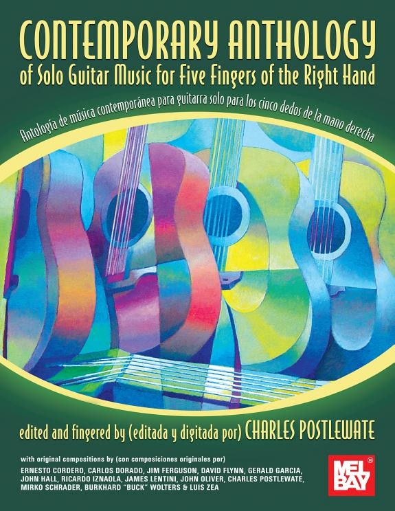 This is the first compilation of guitar music specifically composed for right-hand technique that includes the little finger. the 57 compositions include original pieces in the Easy-Intermediate to Intermediate -Advanced levels by renowned guitarist/composers from Europe, North America, South America and the Caribbean. Music by Ernesto Cordero, Carlos Dorado, Jim Ferguson, David Flynn, Gerald Garcia, John Hall, Ricardo Iznaola, James Lentini, John Oliver, Charles Postlewate, Mirko Schrader, Burkhard «Buck» Wolters and Luis Zea show the advantages of a five-finger technique in the playing of scales, chords, arpeggios, tremolos and harmonics. They also show the advantages of using the little finger for speed, accuracy, strength and balance. All of these compositions are edited and fingered by Postlewate, pioneer in the use of a five-finger technique. This book is a companion to Anthology of Nineteenth Century Guitar Studies for Five Fingers of the Right Hand (MB21153), compiled and fingered by Leonhard Beck and edited by Charles Postlewate. Standard notation only. In English and Spanish.Bonus Material:Hear David Flynn performing his Four Etudes.Etude 1.mp3 Etude 2.mp3 Etude 3.mp3 Etude 4.mp3Hear John Hall performing his Four Etudes. (ordered 2,1,3 and 4 on mp3)Etudes 2134.mp3Hear Dr. James P. Lentini performing his Four Etudes.A Song for Spring.mp3 Summer Groove.mp3 Fall Reflections.mp3 A Winter Afternoon.mp3Hear Scott Sanchez performing:Jugglin’ Five the Clown SingsHear Lawrence del Casale performing:Estudio Boricua #1 Meditacion