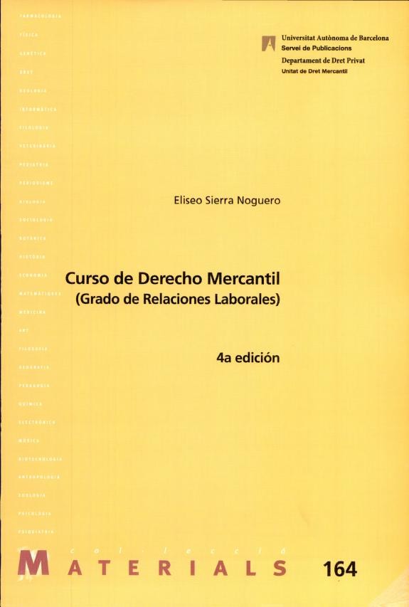 Curso de Derecho Mercantil (Relaciones Laborales) es un material docente dirigido a los estudiantes que se aproximan por primera vez al derecho mercantil desde el Grado de Relaciones Laborales u otra titulación universitaria (Administración y Dirección de Empresas, Económicas, Empresariales, Gestión Aeronáutica, entre otros estudios). Analiza el concepto y los orígenes históricos del derecho mercantil; el ejercicio de la libertad de empresa conforme a las exigencias de la economía general; las formas jurídicas que puede adoptar el empresario; el estatuto jurídico de la empresa; los contratos mercantiles; los títulos valores y el procedimiento de concurso en caso de crisis económica de la empresa. El Curso se redacta en un lenguaje claro y comprensible y sus índices analíticos facilitan su rápida consulta. Eliseo Sierra Noguero es profesor agregado de Derecho Mercantil en la Universidad Autónoma de Barcelona. Doctor en Derecho por la Universidad de Bolonia y Premio Extraordinario de fin de carrera de la Universidad Autónoma de Barcelona, también es autor de varias monografías y numerosos artículos sobre derecho mercantil publicados en prestigiosas revistas jurídicas nacionales e internacionales.