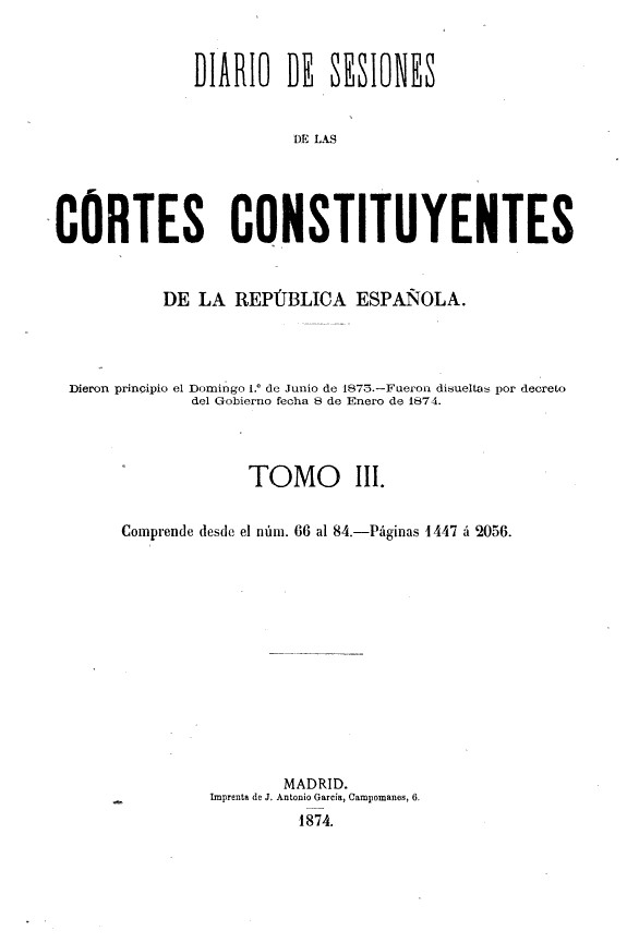 Autor: Spain. Cortes Constituyentes (1873-1874)