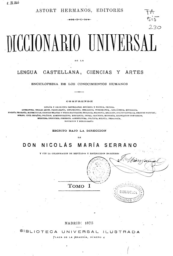 Diccionario universal de la lengua castellana, ciencias y artes: t. 2, t. 3, t. 4, t. 5, t. 6, t. 7,t. 8, t. 9, t. 10, t. 11, t.12, t.13, t.15, t. 16