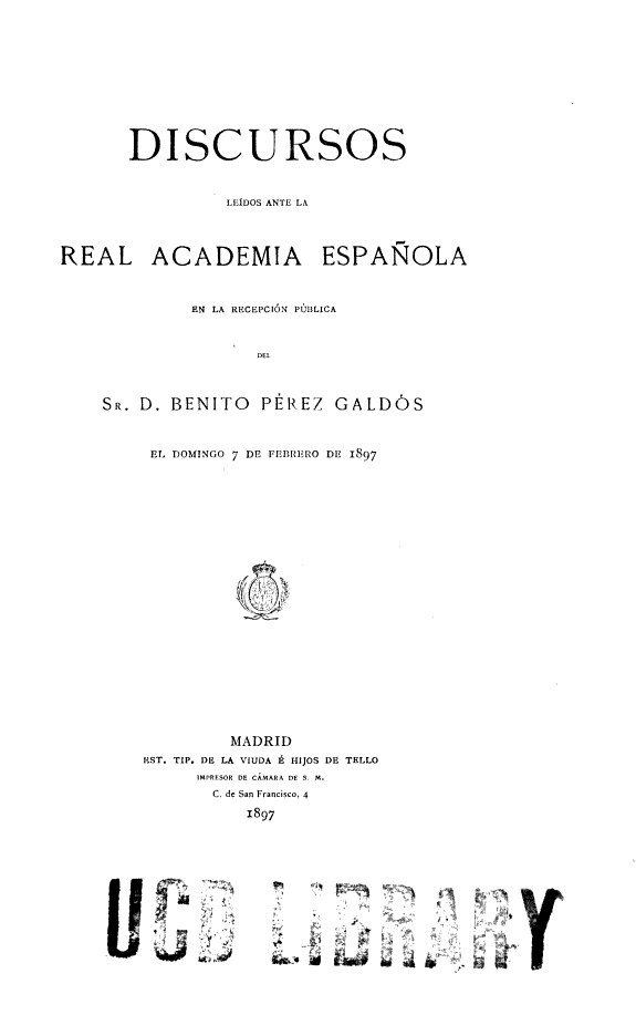 Discursos leídos ante la Real Academia Española en la recepción pública del Sr. d. Benito Pérez Galdós el domingo 7 de febrero de 1897