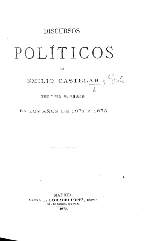Autor: Emilio CASTELAR Y RIPOLL (President of the Spanish Republic.)