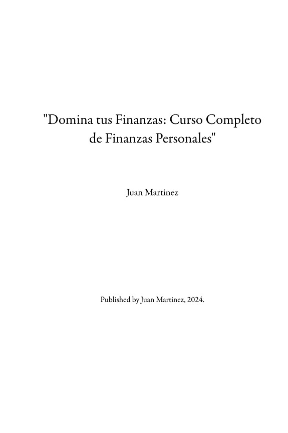 «Domina tus Finanzas: Curso Completo de Finanzas Personales» es una guía exhaustiva y accesible diseñada para quienes desean tomar el control de sus finanzas y construir una base sólida para su futuro económico. Este curso práctico recorre de manera clara y detallada todos los aspectos esenciales de la administración del dinero, desde la planificación y el ahorro hasta la inversión y la protección de activos. A lo largo de sus capítulos, el lector aprenderá a identificar sus metas financieras, elaborar un presupuesto efectivo, reducir deudas y comprender los principios básicos de la inversión para hacer crecer su patrimonio. Cada tema está explicado de forma didáctica, con ejemplos aplicables a la vida cotidiana y ejercicios que facilitan la comprensión y la implementación de conceptos financieros clave. Este curso también abarca temas como la gestión de riesgos, el seguro, la preparación para la jubilación y cómo evitar los errores financieros más comunes. Ideal para principiantes que buscan mejorar su bienestar financiero y para aquellos con conocimientos previos que desean fortalecer su educación en finanzas personales, «Domina tus Finanzas» ofrece herramientas prácticas y consejos probados para que cualquier persona pueda alcanzar sus objetivos financieros y disfrutar de una vida económica. equilibrado y próspera.