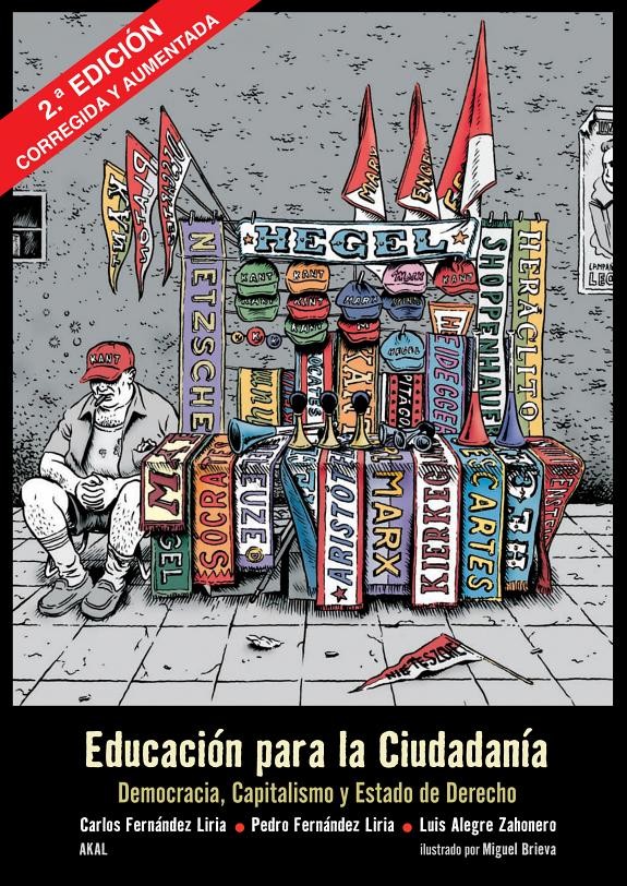 A principios del siglo XXI, en la España democrática, un partido socialista está a punto de aprobar una asignatura que en la precarizada educación pública pretende concienciar, animar a los futuros ciudadanos a la participación democrática, en un contexto nacional e internacional cada vez más degradado por la voracidad capitalista. Este ensayo es un tremendo contraataque a tamaña farsa. Ofrece un profundo análisis, auque expresado con llaneza y claridad, en torno a conceptos sociales y éticos tan importantes como la Ciudadanía, la Democracia, la Libertad (pública e individual), el Derecho, la Ley… desde los orígenes del debate en la Grecia clásica, pasando por la Ilustración hasta el convulso siglo XX. El resultado de esta revisión es demoledor: la grandeza de los planteamientos teóricos en los momentos cumbres del discurrir filosófico y político de la Historia de Occidente -la Grecia clásica, la Revolución francesa, las democracias modernas- resulta inversamente proporcional a la miseria, la injusticia, la violencia, la mezquindad y el horror humanos que han caracterizado en el plano práctico, a ras de tierra, en todo tiempo y lugar a las sociedades humanas. con una virulencia sin límites en el Capitalismo brutal del último siglo y las cómplices democracias occidentales. La obra revela con datos precisos, directos y sin miramientos políticamente correctos, las principales estrategias de las mal llamadas democracias modernas para perpetuar el desequilibrio. cómo cada intento revolucionario de las sociedades para cambiar el sistema neoliberal capitalista e instaurar otros modelos más justos (comunismo y anarquismo) ha sido violentamente reducido por los mismos estados adalides de la Democracia internacional -se atiende a los casos de Cuba y el cono sur latinoamericano, la URSS, la España de principios de siglo, etc-. Asimismo se defienden con contundencia los actuales y vivos intentos revolucionarios en América latina. Los autores realizan un esfuerzo poco usual por manejar materias en principio tan densas y adultas del modo más accesible e incluso atractivo para cualquier adolescente medio. Las geniales y corrosivas ilustraciones de Miguel Brieva constituyen un pilar fundamental para la obra, que adquiere una riqueza y calado crítico indispensable para las nuevas generaciones de cualquier democracia actual.