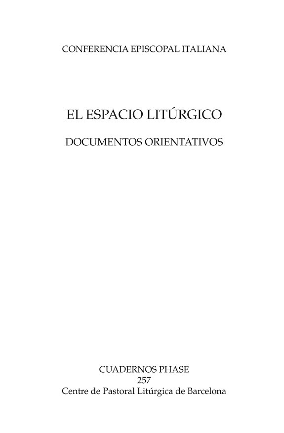 La constitución Sacrosanctum Concilium instaba a revisar todo lo referente a la edifi cación de las nuevas iglesias. La Conferencia Episcopal italiana ha contribuido especialmente al tema con varios documentos, entre ellos los recogidos en este Cuaderno