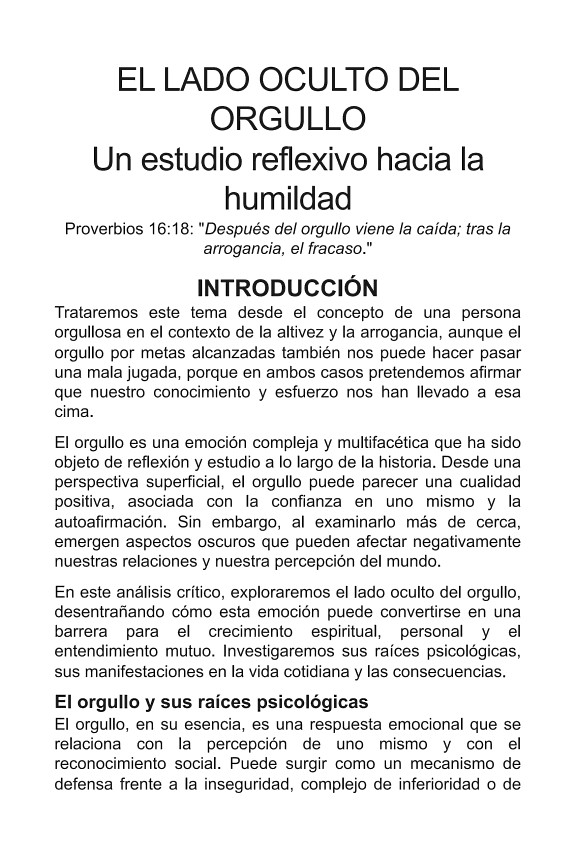 En nuestra cultura posmoderna, el orgullo y la autosuficiencia se exaltan, creando una presión intensa para destacar y alcanzar el éxito personal. Este énfasis en la independencia y la autoconfianza puede llevar a una distorsión de nuestro autoconcepto, inflando nuestro ego y haciéndonos creer que nuestras capacidades intelectuales, espirituales, son superiores a las de los demás. Esta percepción errónea nos ciega a nuestras propias fallas y nos impide reconocer la importancia de la comunidad y la interdependencia. El orgullo daña gravemente la comunicación dentro de la familia, o la comunidad, generando tensiones y conflictos al impedir la admisión de errores y la disposición a pedir perdón. La negativa a reconocer nuestras propias limitaciones y la resistencia a la colaboración pueden llevar al resentimiento, la amargura y la fragmentación de las relaciones. Para superar estos desafíos, es esencial cultivar la humildad y el respeto mutuo. La vida devocional, la reflexión personal y el autoexamen son herramientas poderosas para identificar y abordar el orgullo en nuestra vida cotidiana. Todo a la luz de las Escrituras.