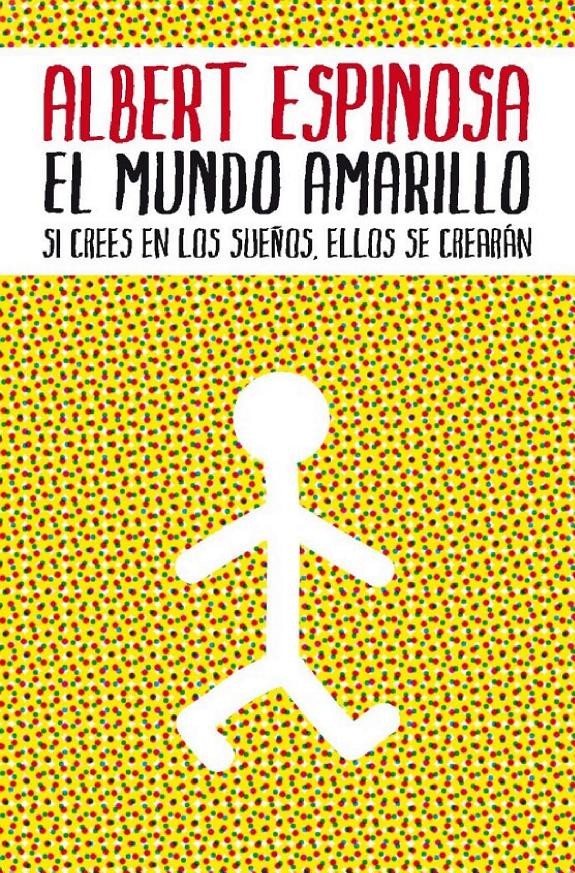 Los «amarillos» esas personas que se sitúan entre el amor y la amistad, esas personas que dan sentido a nuestra vida. « El mundo amarillo es un mundo fantástico que quiero compartir contigo. Es el mundo de los descubrimientos que hice durante los diez años que estuve enfermo de cáncer. Es curioso, pero la fuerza, la vitalidad y los hallazgos que haces cuando estás enfermo sirven también cuando estás bien, en el día a día. »Este libro pretende que conozcas y entres en este mundo especial y diferente; pero, sobre todo, que descubras a los «amarillos». Ellos son el nuevo escalafón de la amistad, esas personas que no son ni amantes ni amigos, esa gente que se cruza en tu vida y que con una sola conversación puede llegar a cambiártela. No te adelanto más: tendrás que leer este libro para poder empezar a encontrar tus «amarillos». Quizás uno de ellos sea yo… » El mundo amarillo habla de lo sencillo que es creer en los sueños para que estos se creen. Y es que el creer y el crear están tan sólo a una letra de distancia. «¿Qué esperas a saber quiénes son tus «amarillos»?» Albert Espinosa Reseña: «Albert habla de un mundo al alcance de todos, y que tiene el color del Sol: el mundo amarillo. Un sitio cálido donde los besos pueden durar diez minutos, donde los desconocidos pueden ser tus mejores aliados, donde el miedo pierde su significado, donde la muerte no es eso que les pasa sólo a los demás y la vida es lo más valioso. Este libro habla de todo esto, de todo lo que sentimos y no decimos, del miedo a que nos quiten lo que tenemos, de reconocernos enteramente y apreciar quiénes somos cada segundo del día. ¡Larga vida a Albert!» Eloy Azorín, actor