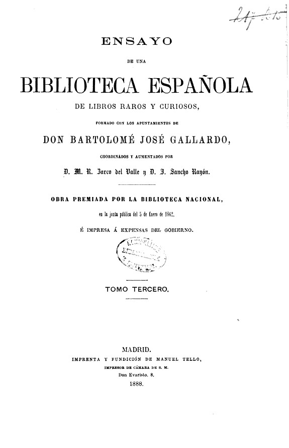 Ensayo de una biblioteca Española de libros raros y curiosos. 3.1888