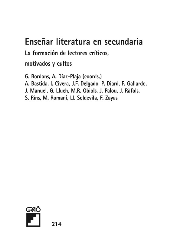 El libro reúne la experiencia de profesores universitarios y de secundaria que desde hace años han investigado y experimentado sobre el tema en nuestro país e incorpora otras voces que, desde áreas o países próximos, nos pueden ayudar a la reflexión. Organizado en tres apartados: el canon, los temas y el entorno cultural, el libro presenta reflexiones y propuestas centradas en la participación, el descubrimiento y el diálogo, a partir de un protagonismo más grande del estudiante-lector, de la obertura a todos los cánones, de la construcción colectiva del conocimiento cultural y del sentido del texto, y de una presencia equilibrada entre lectura y escritura. En definitiva, esta obra quiere poner un granito de arena en la elaboración de materiales prácticos de didáctica de la literatura que integren el eje autor-obra-lector y contribuyan así a la formación de unos lectores activos, motivados, creativos, reflexivos, cultos y libres.