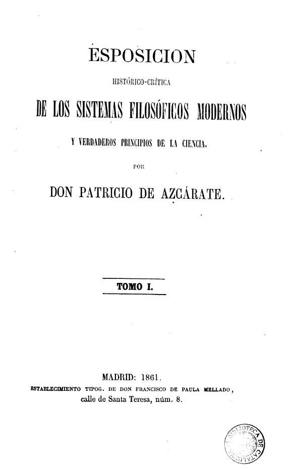 Esposicion histórico-crítica de los sistemas filosóficos modernos y verdaderos principios de la ciencia