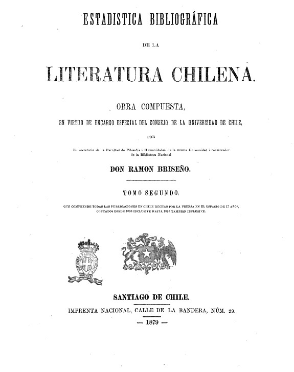 Estadìstica bibliográfica de la literatura chilena obra compuesta … por don Ramon Briseño
