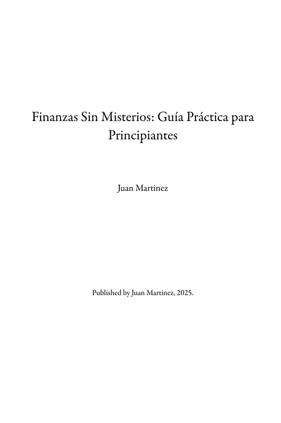 En un mundo donde el dinero juega un papel crucial en nuestra vida diaria, comprender los principios básicos de la educación financiera es esencial para alcanzar la estabilidad y el éxito económico. «Finanzas Sin Misterios: Guía Práctica para Principiantes» es un libro diseñado para quienes desean tomar el control de sus finanzas sin complicaciones ni tecnicismos innecesarios. A lo largo de sus páginas, descubrirás conceptos fundamentales como la gestión del presupuesto, el ahorro inteligente, la inversión segura y la planificación para el futuro. Con un enfoque claro y accesible, este libro te proporcionará herramientas prácticas para mejorar tu relación con el dinero, evitar errores financieros comunes y construir una base sólida para una vida económica saludable. Si siempre has querido entender cómo manejar tus finanzas de manera eficiente, pero no sabías por dónde empezar, esta guía es el punto de partida ideal. ¡Empieza hoy tu camino hacia la libertad financiera!