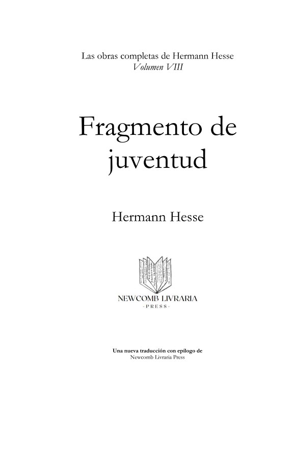 Una nueva traducción del Fragmento de juventud (Fragment aus der Jugendzeit) de Hesse de 1907. Esta edición contiene además un epílogo del traductor, un glosario filosófico de conceptos utilizados por Hesse y una cronología de su vida y obra. Hesse obtuvo el Premio Nobel de Literatura en 1947. También recibió el Premio Goethe de Fráncfort en 1946 y el Premio de la Paz de los Libreros Alemanes en 1955. El «Fragmento de juventud» de Hesse se publicó en el Neue Zürcher Zeitung en 1907.