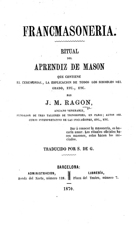 Francmasoneria. Ritual del aprendiz de Mason … Traducido por S. de G.