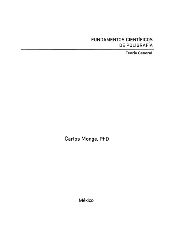 Estimado lector, se encuentra frente a usted una obra sin precedente temático, producto de 10 largos años de trabajo de investigación y documentación sobre la ciencia de la Poligrafía. Tuvo que transcurrir una década, desde el 2011, para que Carlos Monge pudiera presentarnos una teoría general debidamente sistematizada, estructurada y ordenada para conocer los primeros principios sobre los que se soporta esta disciplina. Esta obra integra los Fundamentos Científicos de la Poligrafía desde los tres grandes pilares del rigor científico: Filosofía de la Ciencia, Estadística y Metodología Experimental. Si tu necesidad es conocer el carácter científico de esta rama del saber, o comienzas un proceso de instrucción sobre esta técnica, ya sea como estudiante o como profesor, tienes en tus manos la guía básica correcta.