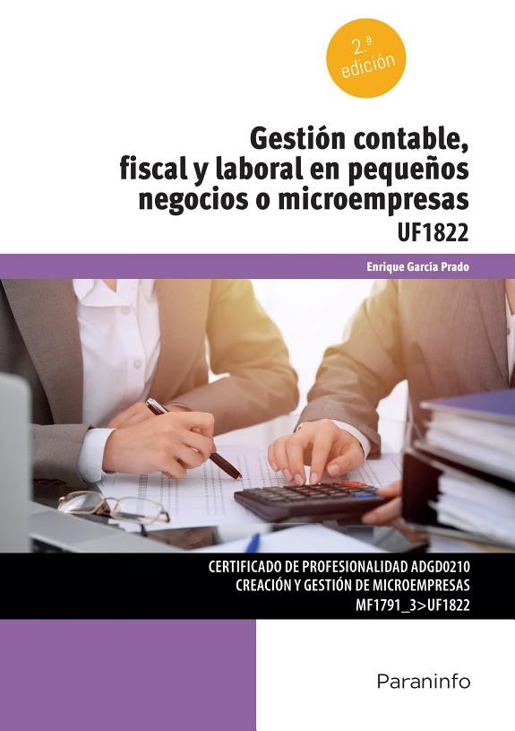 En este manual se analizan todos los aspectos básicos que atañen a la dirección de las pequeñas empresas en materias transversales como son las contables, fiscales y laborales. En primer lugar, se aborda el inicio de la actividad económica en pequeños negocios o microempresas, atendiendo a la legislación mercantil básica, la gestión de cobros y las fórmulas de reclamación de impagados. A continuación, se analiza cómo se lleva a cabo la gestión de tesorería en estos pequeños negocios o microempresas, estudiando la ejecución del presupuesto de tesorería y métodos de control, las diversas técnicas para la detección de desviaciones y las aplicaciones informáticas y ofimáticas en la gestión de tesorería. Por último, aprenderemos a realizar la gestión contable, fiscal y laboral en pequeños negocios o microempresas, tanto en lo referente a las gestiones contables como a la gestión fiscal, y las aplicaciones informáticas y ofimáticas de gestión contable. Cada epígrafe se complementa con un cuestionario así como con una serie de actividades prácticas, cuyas soluciones están disponibles en www.paraninfo.es. El presente libro desarrolla de forma precisa el contenido de la UF 1822 Gestión contable, fiscal y laboral en pequeños negocios o microempresas, incardinada en el MF1791_3 Gestión administrativa y económico-financiera de pequeños negocios o microempresas, incluida dentro del certificado de profesionalidad ADGD0210 Creación y gestión de Microempresas, regulado por el RD 1692/2011, de 18 de noviembre. Enrique García Prado trabaja como docente en el ámbito de la formación ocupacional y continua.