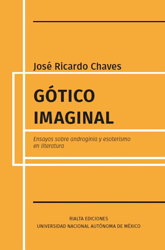 José Ricardo Chaves: Gótico imaginal: Ensayos sobre androginia y esoterismo en literatura, Rialta Ediciones / UNAM, Querétaro / Ciudad de México, 2018, 208 pp. Gótico imaginal consigue, a partir de la combinación de exámenes de caso y revisiones historiográficas, articular tradiciones lingüísticas y culturales diversas (desde el sánscrito, el hindi o el japonés del siglo XVIII hasta el inglés del milenio que corre) bajo un código común; ese que emerge de la capacidad humana para comunicar las ambigüedades que nos hacen más vulnerables, los temores y terrores, los credos traicionados, las zonas a veces inevitablemente peor guardadas del individuo y sus comunidades. José Ricardo Chaves advierte y analiza en este libro parte del patrimonio estético y discursivo que ha dado forma y voz a la androginia y el hermafroditismo, a las prácticas y doctrinas esotéricas y rosacruces, a la imaginería del vampirismo y lo gótico. Entre conocidos y olvidados, obras de Virginia Woolf, Gustav Meyrink, William Butler Yeats, Mary W. Shelley, Jeffrey Eugenides, Yukio Mishima, Ueda Akinari, Hans Heinz Ewers, Franz Hartmann, Arnold Krumm-Heller, entre muchos otros, son convocadas aquí como ese dominio donde sexualidad, extrañeza, monstruosidad, eros y horror se cruzan en la palabra y, a veces, en la aspiración a la belleza.
