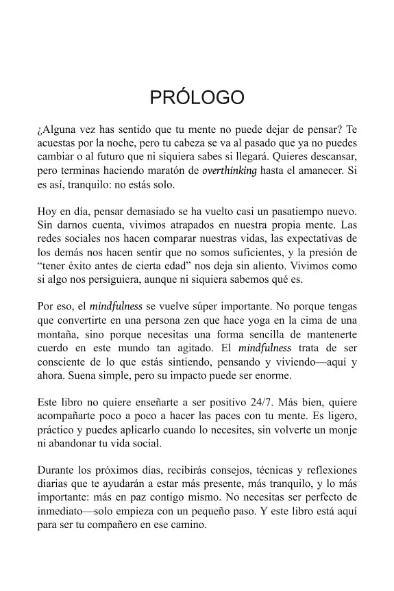 ¿Tu mente suena como redes sociales en hora pico? ¿Notificaciones mentales que no paran nunca? “Guía de Mindfulness para los que Piensan Demasiado” es el botón mute que estabas buscando. Lo que vas a ganar con este ebook: ✅ Más enfoque = tareas terminadas más rápido. ✅ Mejor humor; no explotás solo por un doble check en azul. ✅ Dormís profundo sin scrollear TikTok hasta el amanecer. ✅ Energía extra para grindear en el trabajo, el trading o subir de rango en tus juegos. Dejá de alquilarle espacio en tu cabeza a pensamientos tóxicos. Deslizá hacia arriba, tocá Comprar o Agregar a tu biblioteca, y empezá a sentir la diferencia desde hoy—porque si no es ahora… ¿cuándo vas a encontrar calma?