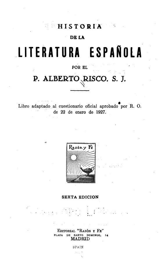 Historia de la literatura española, por el P. Alberto Risco, S. J. …