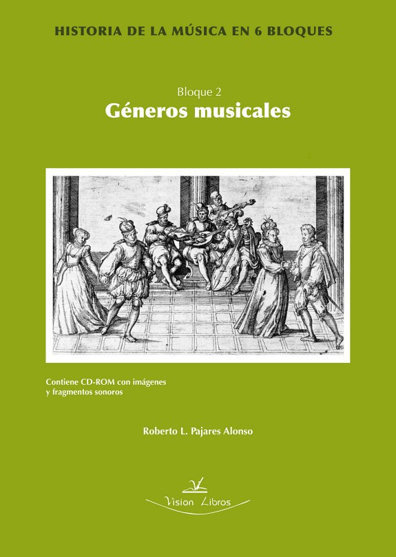 La principal novedad de esta Historia de la Música es que cada uno de sus 6 libros se centra en un tema concreto. De este modo, al individualizar cada tema, se puede tener una visión comparada a través del tiempo, perspectiva que se pierde cuando se tratan todos los temas a la vez en una misma época. Cada libro o bloque se divide en 9 épocas. Este segundo bloque, Géneros musicales, estudia los siguientes aspectos: • Función religiosa o profana de los principales géneros que se cultivan en cada época. • Características propias de cada género musical: estructura, textura, instrumentación, tipo de texto (si lo hay), etc. Su evolución. • Principales compositores y obras de cada género. El libro se acompaña de un CD-ROM en el que hay 573 audiciones (fragmentos), 154 partituras que se corresponden con otras tantas audiciones y 258 imágenes (danzas, escenografías de óperas, escenas, carteles de conciertos, etc.), todo ello comentado en el libro, incluyendo los textos y su traducción. Estas audiciones, partituras e imágenes sirven de ilustración al contenido teórico. También se incluye en el CD-ROM una bibliografía comentada, enlaces seleccionados y comentados a páginas web y una lista de las 573 audiciones (título, autor, fecha de composición, intérpretes, sello, año de grabación, etc.). El objetivo principal ha sido crear un material de consulta para estudios universitarios de Musicología y para estudios en Conservatorios Superiores de Música, aunque también puede ser de interés y utilidad para profesionales de la música y melómanos en general.