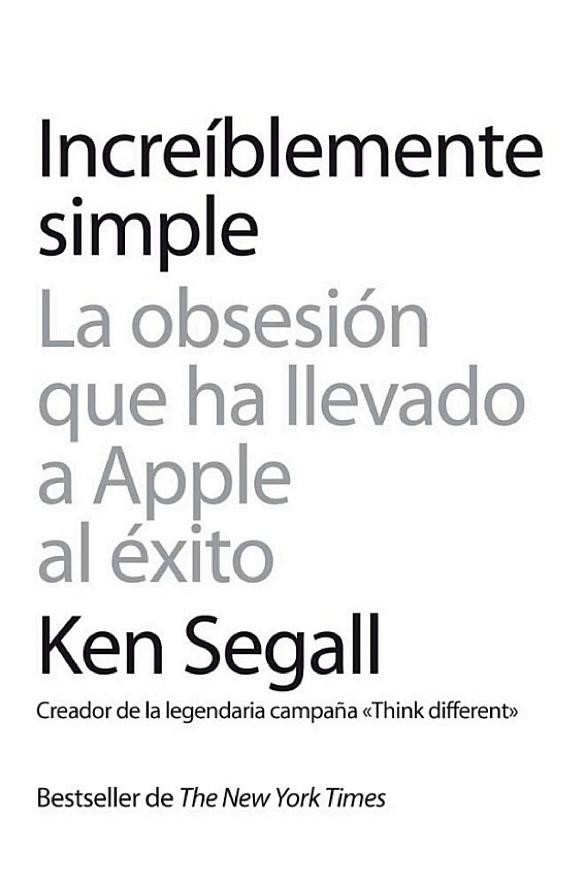 En Increíblemente simple descubrirá el arte de la sencillez que predicaba el fundador de Apple Steve Jobs y del que es partícipe el autor de este libro, Ken Segall, creador de la campaña publicitaria más recordada de Apple, la icónica «Think different». Con este libro aprenderá la filosofía del: • Think minimal (pensar en mínimo): reducir las opciones al mínimo aporta claridad a una compañía y a sus clientes, tal como Jobs demostró cuando reemplazó más de veinte modelos de producto por una línea de cuatro. • Think small (pensar en pequeño): optar por grupos reducidos de empleados inteligentes para organizar proyectos motiva a los trabajadores y aumenta su productividad. • Think in motion (pensar en movimiento): hacer que los equipos de proyectos estén en constante actividad focaliza el pensamiento creativo en objetivos bien definidos y minimiza las distracciones. • Think iconic (pensar conceptualmente): utilizar una imagen simple y potente para simbolizar el beneficio de un producto o de una idea crea un recuerdo mucho más profundo en la mente del consumidor. • Think war (pensar beligerantemente): practicar la competencia desleal y utilizar todas las armas a su disposición es la mejor forma de asegurarse de que las ideas sobrevivirán indemnes. En definitiva, en esta obra Segall describe la obsesión de Apple por la simplicidad a través de histroias personales fascinantes y nunca antes contadas. Gracias a su ingenio y su perspicacia descubrirá cómo las compañías que aprovechan el poder de lo simple pueden destacar frente a sus competidores, y cómo las personas que lo dominen pueden convertirse en activos fundamentales para sus organizaciones.