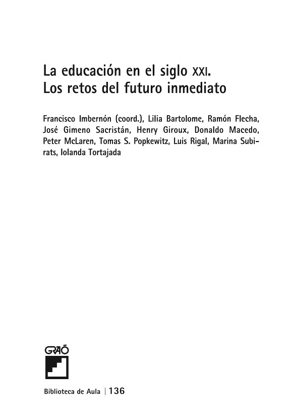 Autor: Francesc Imbernon Muñoz, Lilia I. Bartolome, José Gimeno Sacristán, Donaldo Macedo, Peter McLaren, Tomas S. Popkewitz, Luis Rigal, Iolanda Tortajada Giménez, Ramón Flecha García, Marina Subirats Martori, Henry A. Giroux