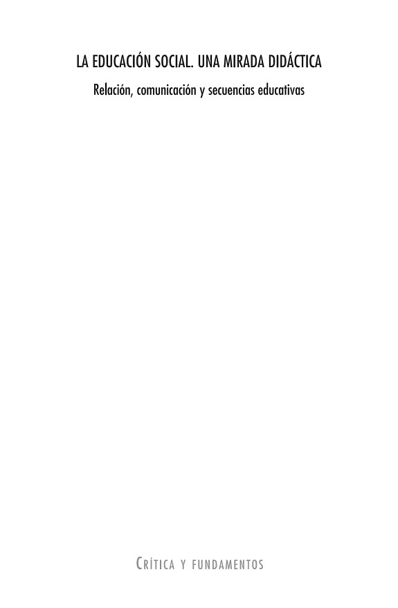 Libro que sirve de complemento al anterior del año 1999, Didáctica en la educación social, y que actualiza los cambios acaecidos tanto en la materia como en la sociedad. Para los autores, las aportaciones de la didáctica son fundamentales para la educación social, así se profundiza en el concepto de educación social; se aplican los conocimientos didácticos al diseño, desarrollo y evaluación de acciones socioeducativas; se tratan la comunicación, el acompañamiento, la atención a la diversidad y la resiliencia, y se analizan distintos tipos de trabajo socioeducativo (individual, grupal, comunitario y también en medio abierto y con relación a la institución escolar). La presentación de casos sirve de ilustración y pretende ayudar a la reflexión.