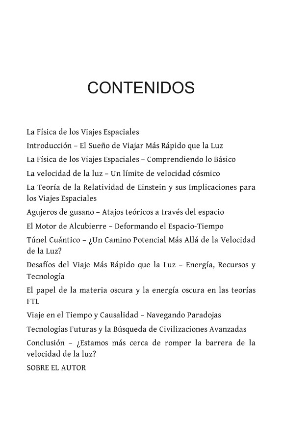 La Física de los Viajes Espaciales: Explorando el Viaje Más Rápido que la Luz es un viaje emocionante al mundo de la ciencia de vanguardia y la física teórica. Imagina un futuro donde los viajes interestelares no sean solo un sueño, sino una realidad. En esta guía completa y accesible, profundizarás en la ciencia detrás del viaje más rápido que la luz, explorando conceptos como la teoría de la relatividad de Einstein, los agujeros de gusano, los motores warp y el túnel cuántico. Ya seas un entusiasta del espacio, un fanático de la ciencia ficción o simplemente tengas curiosidad por el futuro de la exploración espacial, este libro descompone ideas complejas en capítulos atractivos y fáciles de entender. Descubre las últimas teorías sobre la tecnología de viajes espaciales, el papel de la materia oscura y la energía oscura, y la fascinante posibilidad de viajar en el tiempo. También exploraremos la búsqueda de civilizaciones extraterrestres avanzadas y cómo sus descubrimientos podrían guiar nuestro propio viaje a las estrellas. Con explicaciones vívidas, conocimientos científicos reales y posibilidades que invitan a la reflexión, La Física de los Viajes Espaciales es tu guía esencial para comprender cómo la humanidad podría romper la barrera de la luz y descubrir los misterios del cosmos.