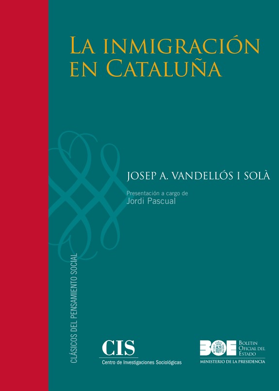 La obra posee una bien construida estructura interna, que pasa revista al problema propuesto a lo largo de cinco capítulos. En primer lugar se presenta la realidad que está en el principio del fenómeno de la inmigración, esto es, la escasez del crecimiento demográfico de la población catalana, de la que se deriva la necesidad de recibir contingentes humanos foráneos. El segundo capítulo analiza las características de la inmigración en Cataluña, para verse en el siguiente la problemática que nace de la irrupción de las masas de población inmigrantes en el seno de una determinada colectividad. Este tercer capítulo es el más teórico de todo el libro y el que contiene la parte dedicada al estudio de temas como la raza, la herencia y el ambiente. En el cuarto capítulo se analiza la inmigración desde los puntos de vista económico, social y político, para terminarse la obra con un capítulo dedicado a la consideración de la necesidad de una política asimiladora y de las posibilidades que esta presenta. © Centro de Investigaciones Sociológicas y Agencia Estatal Boletín Oficial del Estado © Jordi Pascual (Presentación) © Carles Gil y Salvador López Arnal (traducción) Título Original: La inmigració a Catalunya. ISBN (AEBOE): 978-84-340-1993-5 ISBN (CIS): 978-84-7476-564-9 NIPO (AEBOE): 007-11-113-3 NIPO (CIS): 004-11-017-5 Depósito legal: M-42695-2011
