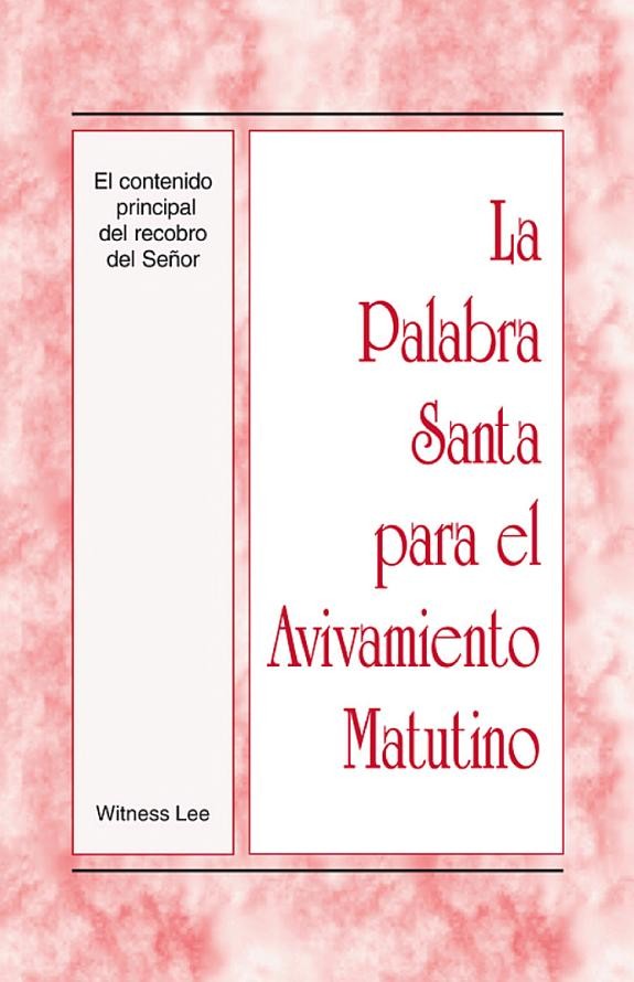 Este libro se publica como una herramienta que ayude a los creyentes a desarrollar el hábito de pasar un tiempo diario de avivamiento matutino con el Señor en Su palabra. Al mismo tiempo, éste provee un repaso parcial de la Conferencia internacional de habla china celebrada en Taipéi, Taiwán, del 21 al 22 de febrero del 2015. El tema general de la conferencia fue:“El contenido principal del recobro del Señor”. Al tener los creyentes un contacto íntimo con el Señor en Su palabra, la vida y la verdad serán forjadas en su ser, y así ellos serán equipados para profetizar en las reuniones de la iglesia a fin de edificar el Cuerpo de Cristo.
