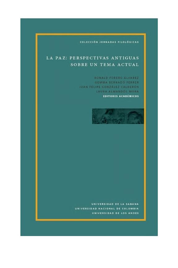 Este libro pretende buscar luces en los clásicos para iluminar nuestro presente, un presente inestable y conflictivo, un presente en el que la muerte y la desolación se propagan como una plaga, un presente en el que la paz es un anhelo para millones de personas inmersas en numerosos conflictos alrededor del mundo. Se trata de una contribución a la reflexión en torno a ese anhelo de paz universal gracias a las contribuciones de investigadores de la Antigüedad Clásica que participaron como coautores a partir de sus investigaciones. Sus indagaciones parten de su conocimiento de los textos antiguos para reflexionar sobre la paz, ayudarnos a entender los conceptos y buscar caminos alternativos hacia ella, no solo en Colombia, sino en el mundo.