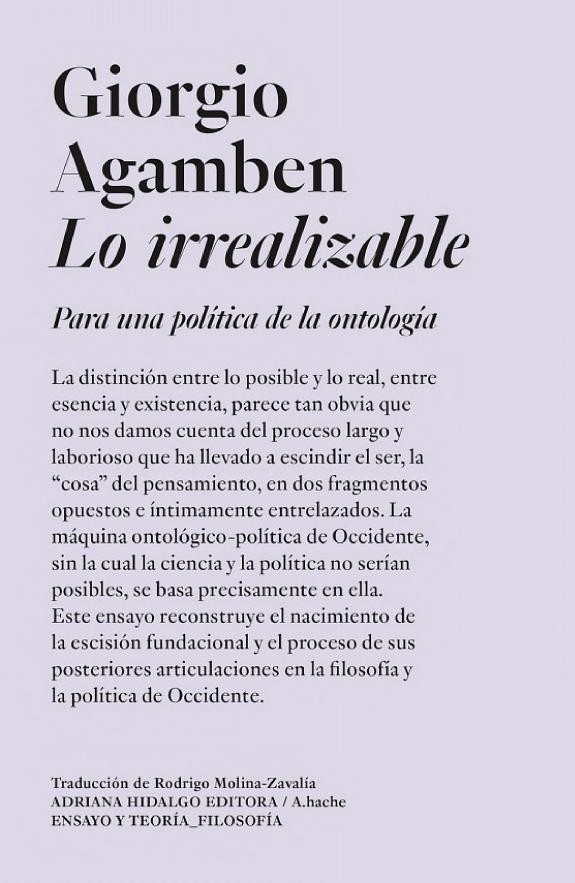 La distinción entre lo posible y lo real, entre esencia y existencia, parece tan obvia que no nos damos cuenta del proceso largo y laborioso que ha llevado a escindir el ser, la «cosa» del pensamiento, en dos fragmentos opuestos e íntimamente entrelazados. La máquina ontológico-política de Occidente, sin la cual la ciencia y la política no serían posibles, se basa precisamente en ella. Este ensayo reconstruye el nacimiento de la escisión fundacional y el proceso de sus posteriores articulaciones en la filosofía y la política de Occidente.